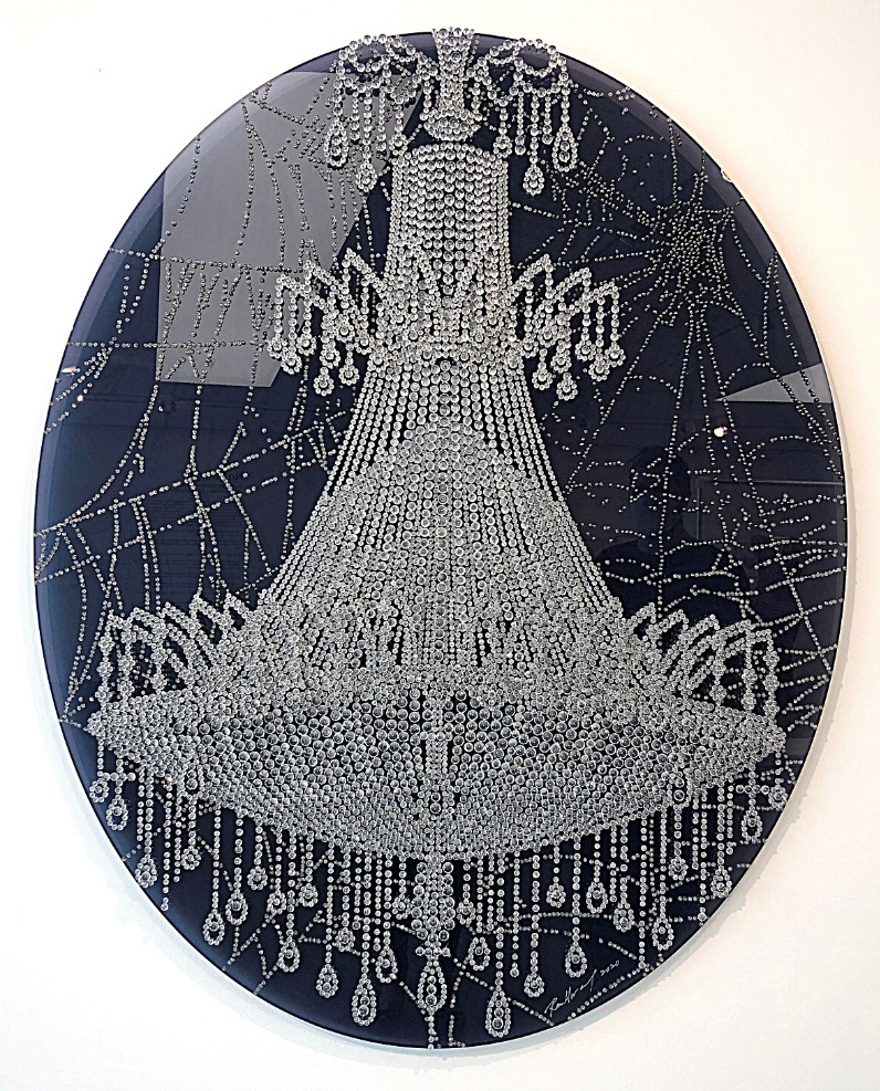 To the rear of the gallery is a collection of four beaded skulls with a slight Cthulhu aesthetic, owing to the long dangling strings of beads. These were created by Jim Skull. Even though I am not usually drawn to grotesque imagery I found myself fascinated by the uniformity of beads and the symmetry.