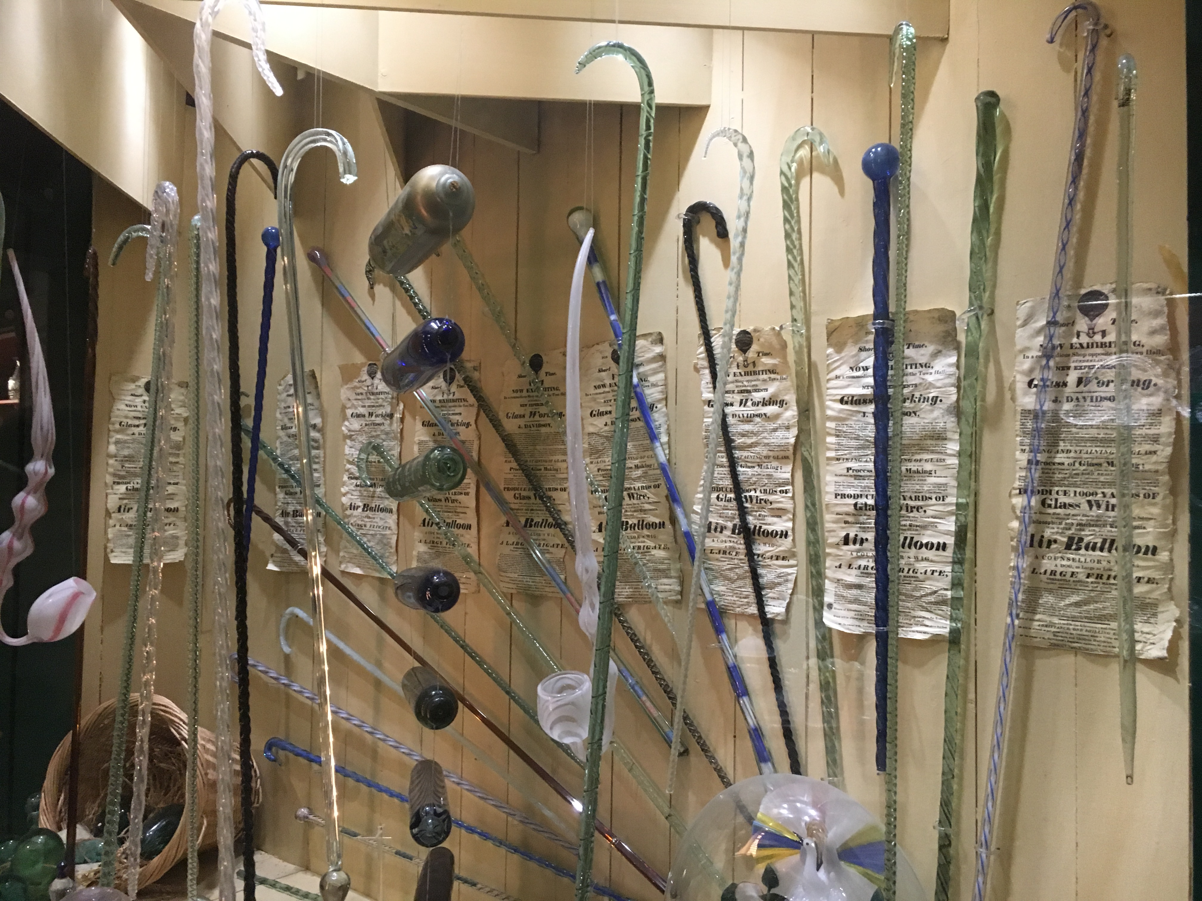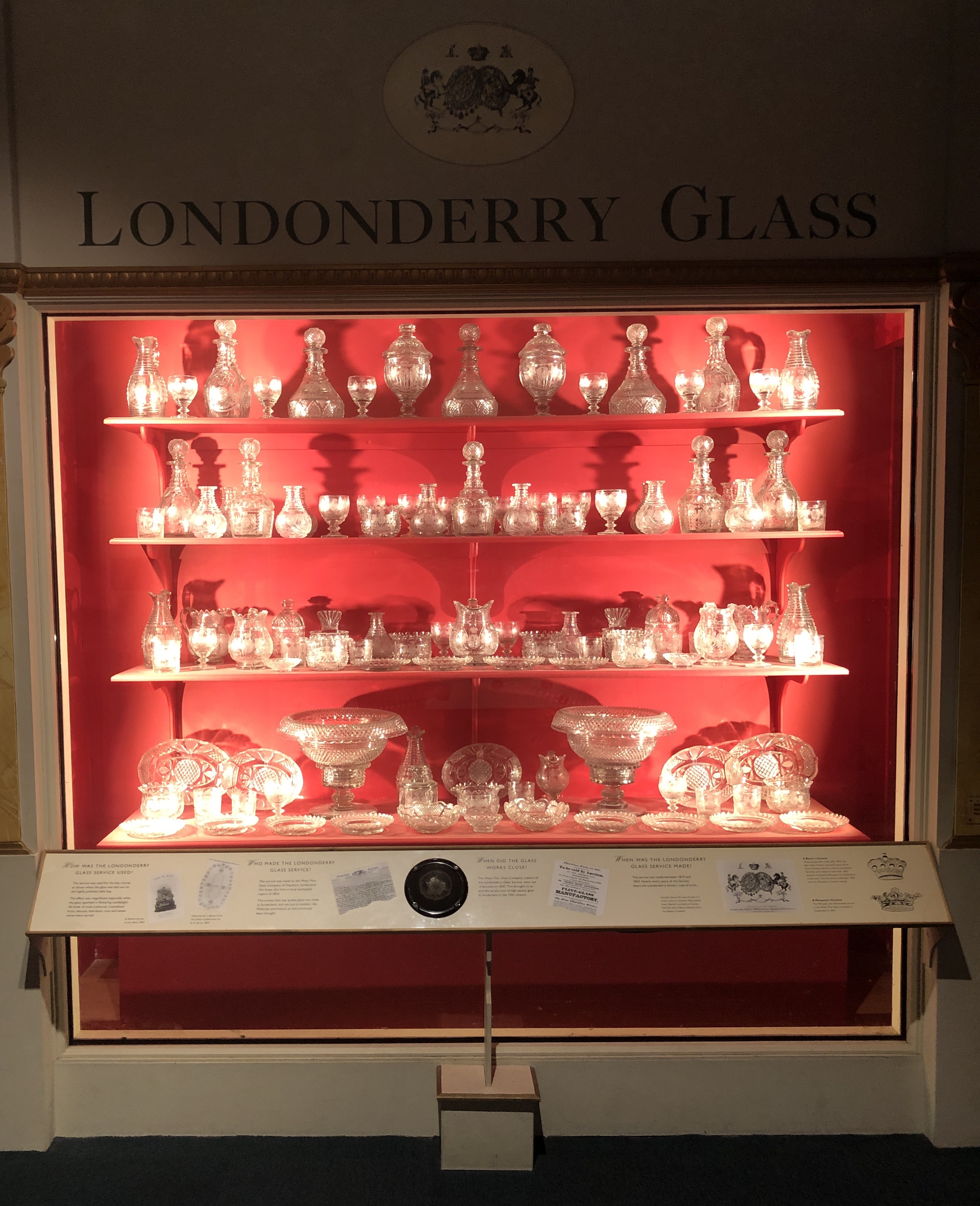 The panel displays are informative, providing information relating to the manufacturing processes of pressed and etched glass, a brief history of Jobling glass, the back story of the Londonderry suite and an explanation of different friggers, which included dumps, hitchy dobbers and walking canes.