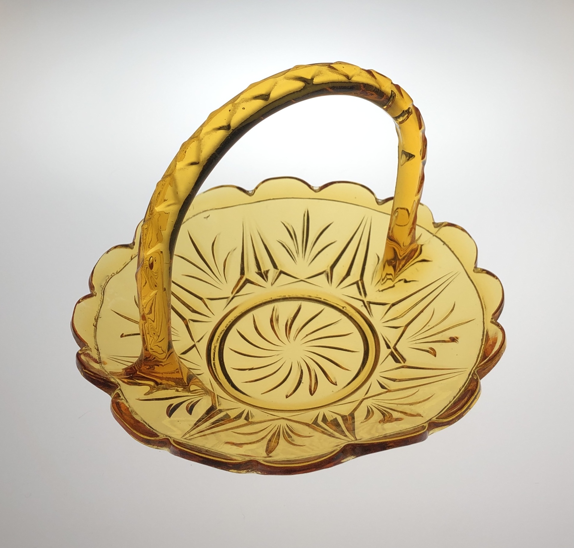 the design is shown in a Matthew Turnbull catalogue that is available to view in the Tyne & Wear Archives (it can be viewed online). When the Turnbull factory closed down in the 1950’s most of the moulds went to Davidson’s factory, and they continued producing the posy. My amber posy vase is iridised amber over clear glass, i.e. carnival glass, which Turnbull was well known for. I’m not aware of Davidson’s making any carnival glass, so I am reasonibly confident that my amber posy vase was produced at the Turnbull glass works.